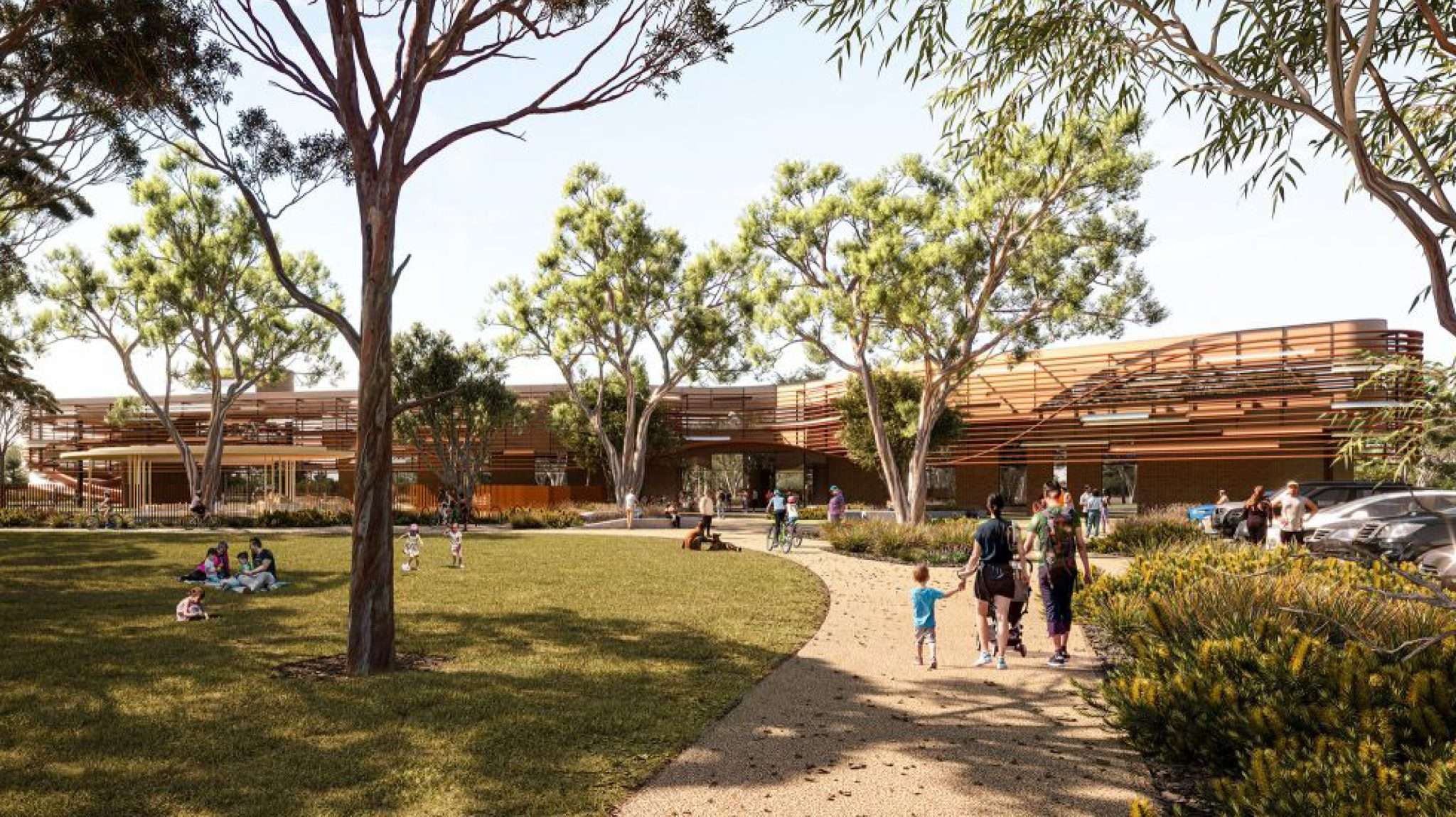 The centre features extensive indoor and outdoor pool areas, water slides, splash zones and lawned recreation spaces, as well as gym and fitness facilities and spa/sauna/steam room. It will be powered using 100% renewable energy.